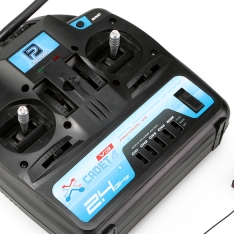 CADET (Protocol V) 2. GHz FHSS with crossover controllers in Mode 2. Transmitter with deflection switches, removable. Přijímač k vysílači Cadet protokol VNení kompaktibilní s RC soup. GHz mode DOPRODEJ Price: 460€ . Vysílač s přepínači smyslu výchylek, vypínatelnými mixy, 6-k přijímač s fail-safe.