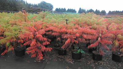 This very hardy shrub is a commonly known sumac. Laciniata , however, means lace-leaf and that makes this variety an exclusive specimen. Add a one-line explanation of what this file . Deciduous - finely-cut leaflets.
